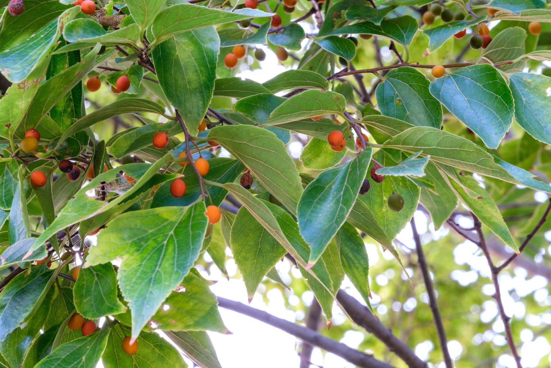 エノキは夏には枝葉が青々と茂り、秋にはイチョウと並んで鮮やかな黄色に紅葉します。暖かい地方でも鮮やかに紅葉するため、公園樹としても人気があります。